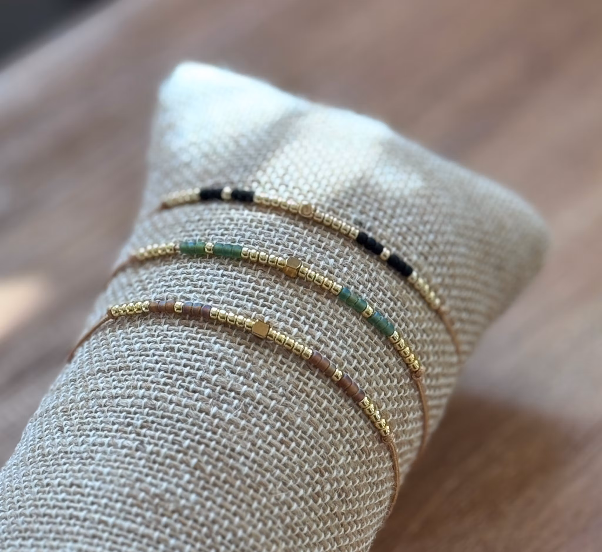 Finns i lager! Armband guld/grön 59:- Lägg i korgen Artikelnummer: 628 Justerbart armband. Tillräckligt långt för att använda både som fotlänk och armband! Tillverkat för hand på Bali ♡