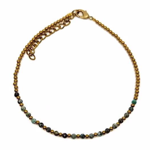 Fotlänk med pärlor av mässing och afrikansk turkos.