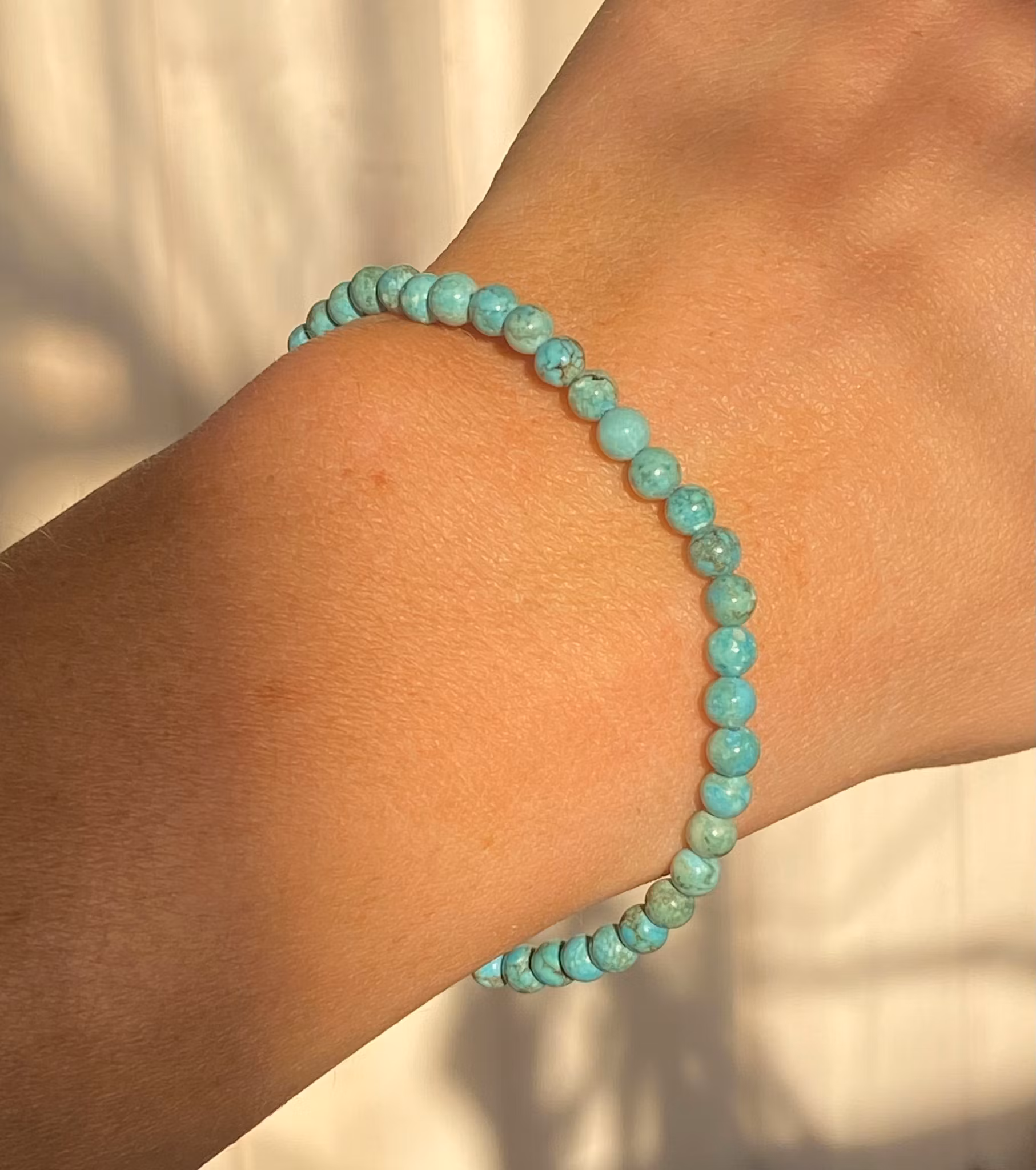 Elastiskt armband med 4mm pärlor av turkos ♡