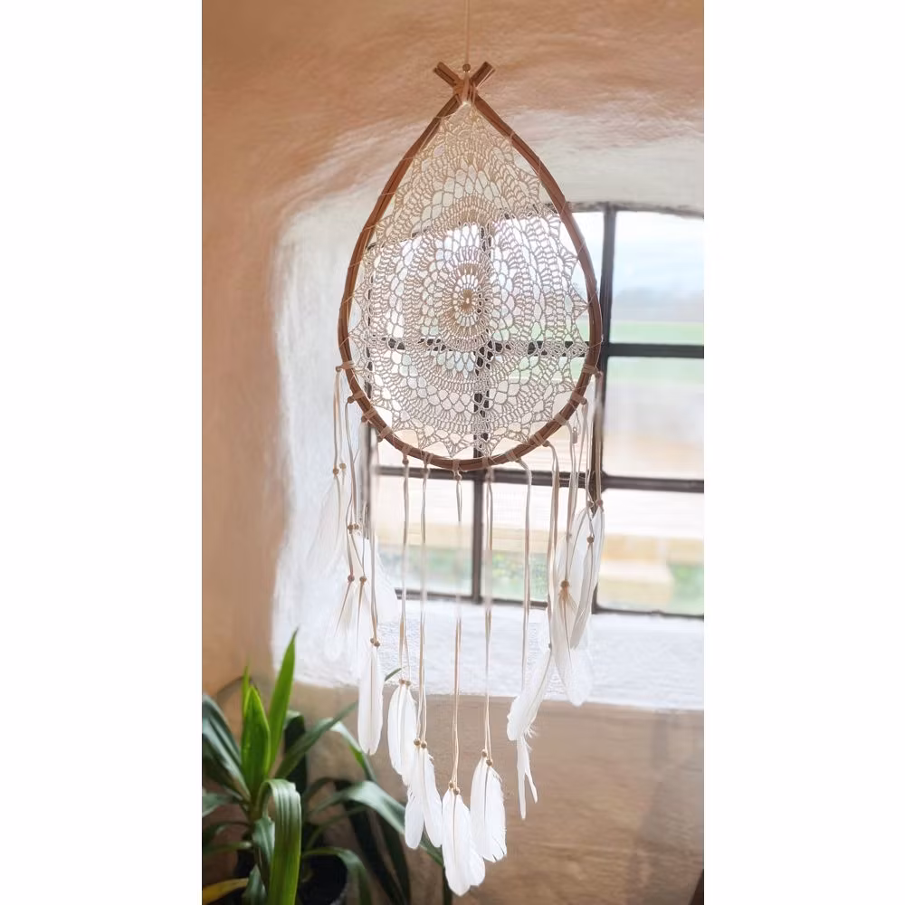 Finns i lager! Drömfångare droppe i rotting 249:- Lägg i korgen Artikelnummer: 59 Drömfångare i rotting med makramé, träpärlor och fjädrar.Drömfångaren är 95cm lång och 28,5cm bred.Handgjord med kärlek på Bali.