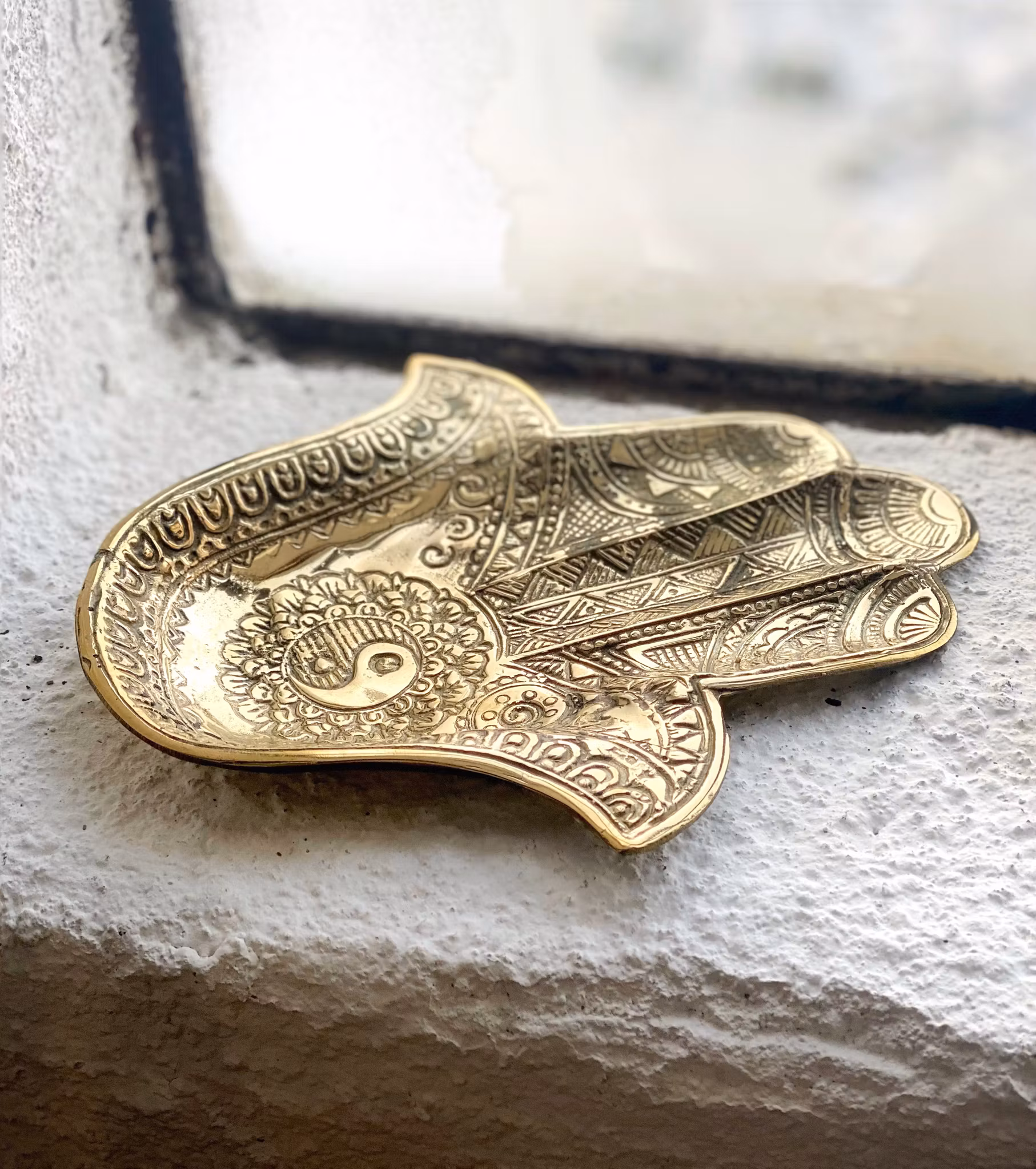 Fat i brons av Fatimas hand / hamsa hand.