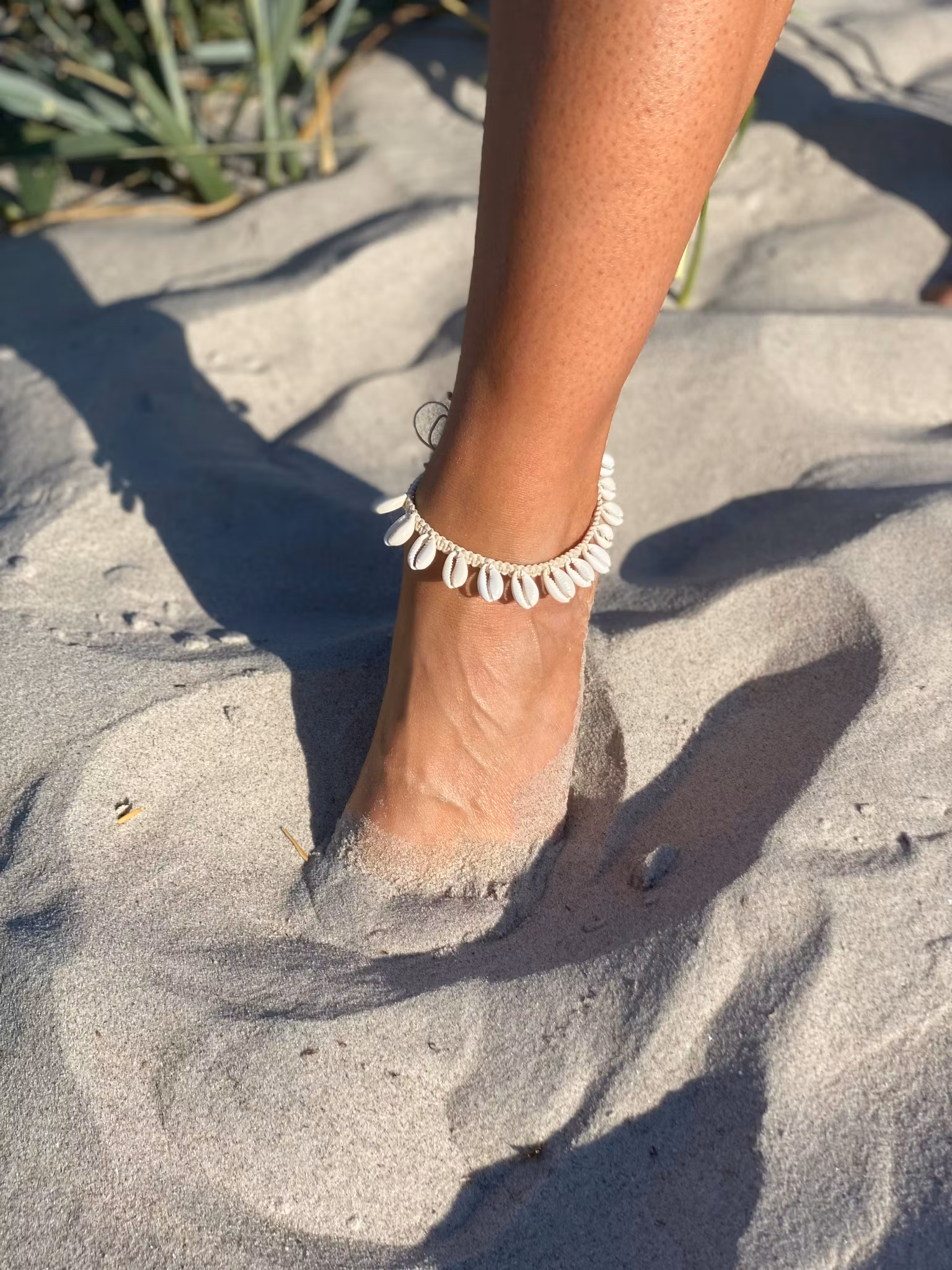 Finns i lager! Fotlänk med cowry snäckor vit 98:- Lägg i korgen Artikelnummer: 450 Justerbar fotlänk med cowry snäckor.Handgjord med kärlek på Bali ♡