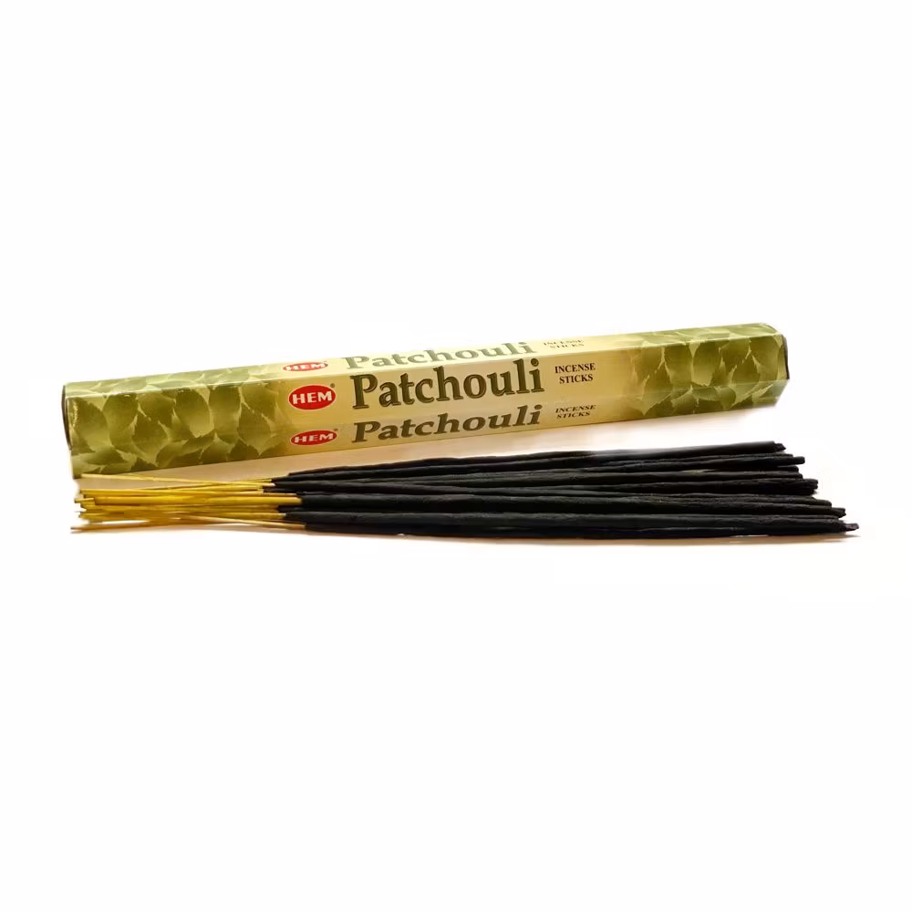 Finns i lager! Patchouli (HEM) 20:- Lägg i korgen Artikelnummer: 65 Rökelser från Indien med en härlig doft av patchouli.Patchouli är en växt som sägs ha förmågan att lindra depression, ge en känsla av avslappning och hjälper till att lindra stress eller ångest.Det är 20st rökelsepinnar i en ask.