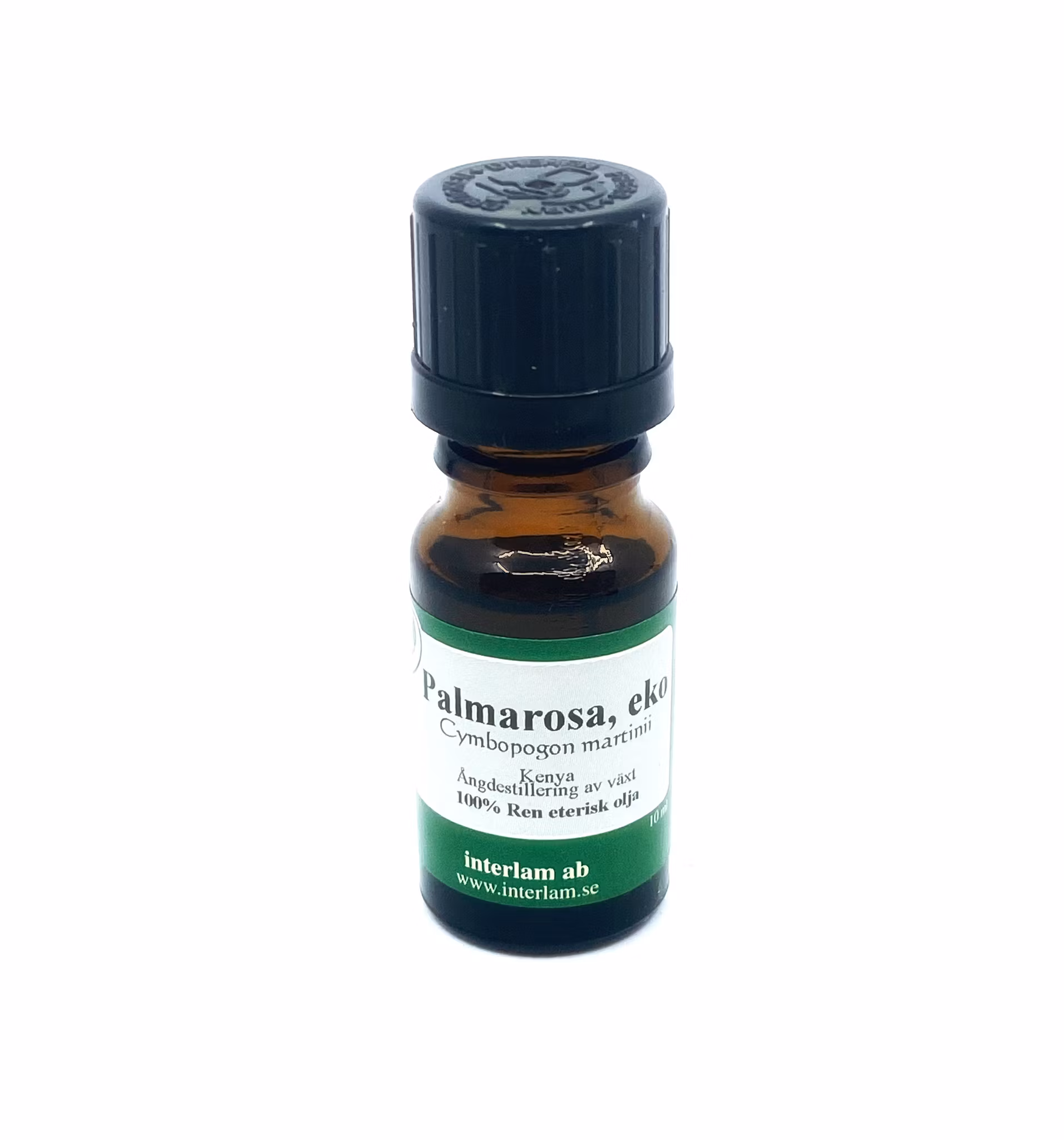 100% ren palmarosa olja, ångdestilleras ur gräset från Kenya. Palmarosan är besläktat med citrongräs, men har en söt doftar av ros.