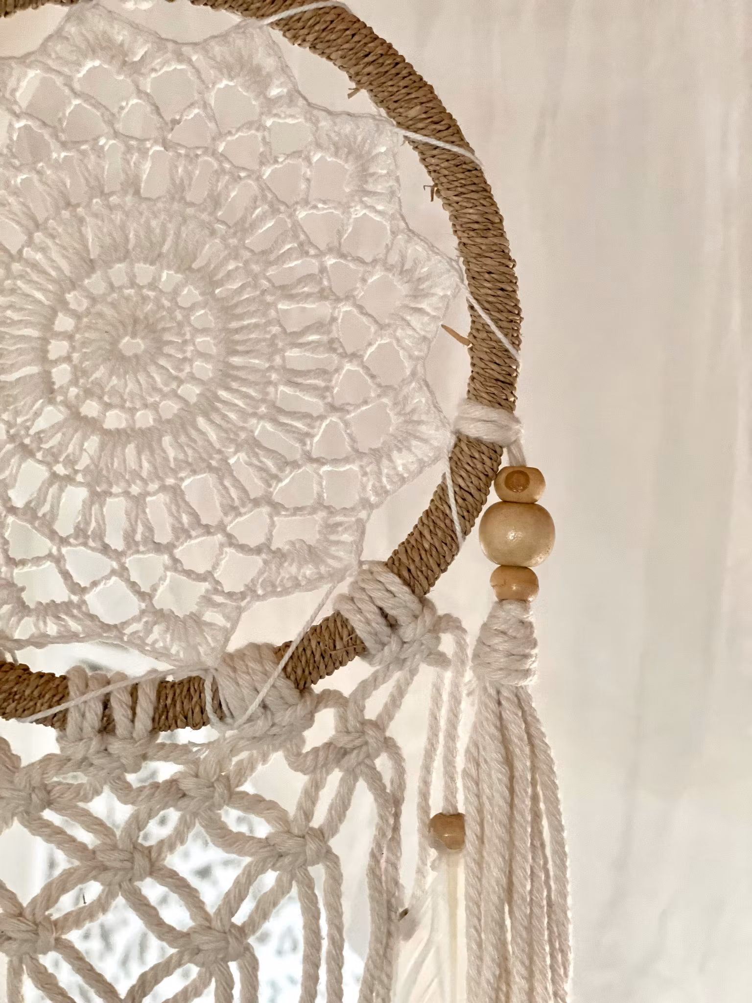 Finns i lager! Liten drömfångare med makramé 149:- Lägg i korgen Artikelnummer: 115 Drömfångare med makramé, fjädrar och träpärlor. Ringen är tvinnad med tråd i naturmaterial.Diameter på ringen är 17cm.Handgjord med kärlek på Bali ♡