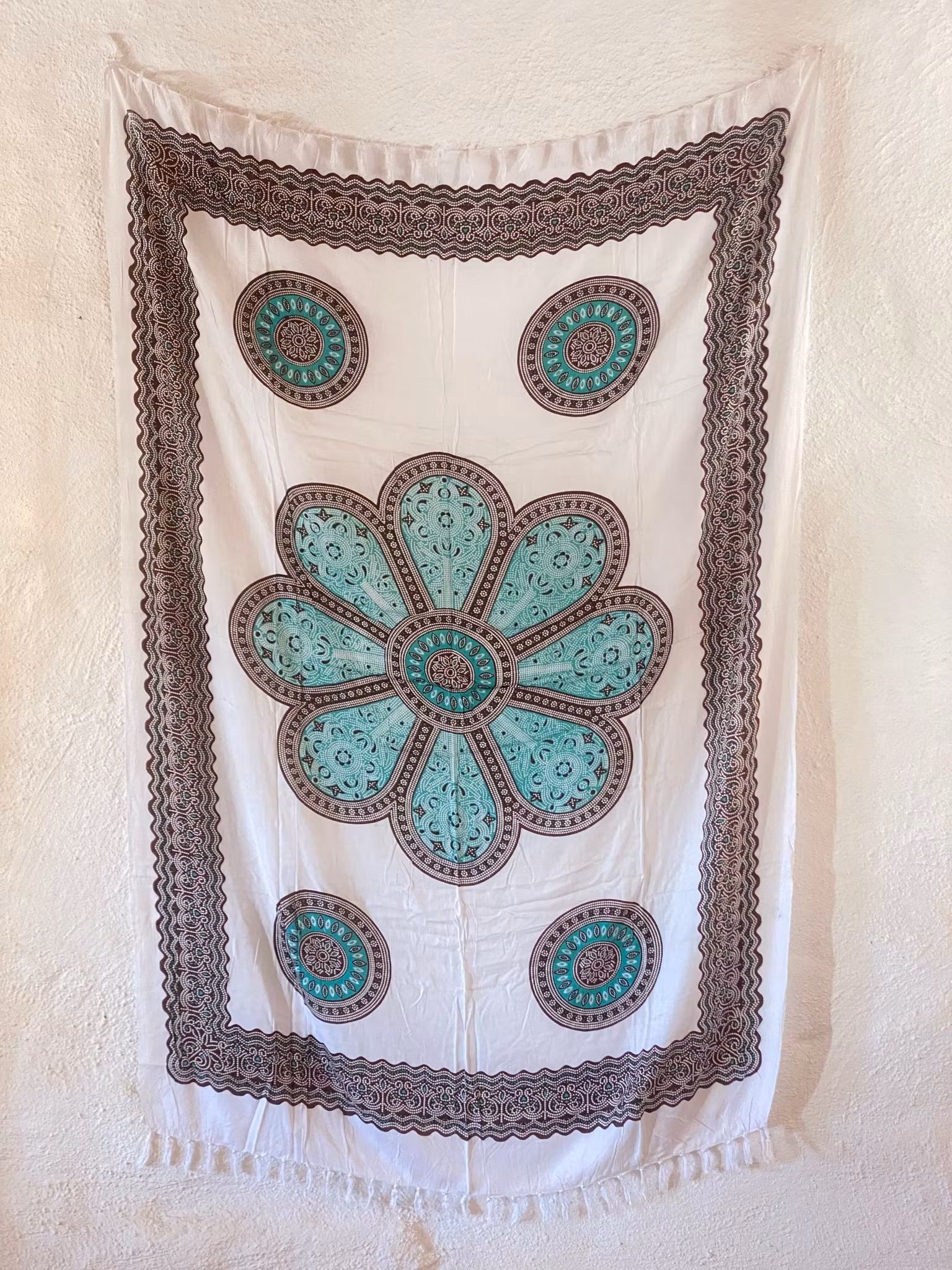 Finns i lager! Sarong patma turkos/brun/vit 198:- Lägg i korgen Artikelnummer: 429 Underbart mjuk sarong i rayon ☾Perfekt att svepa runt höften, fästa på väggen eller att ligga på på stranden (torkar på nolltid!) Storlek: cirka 80x160cm