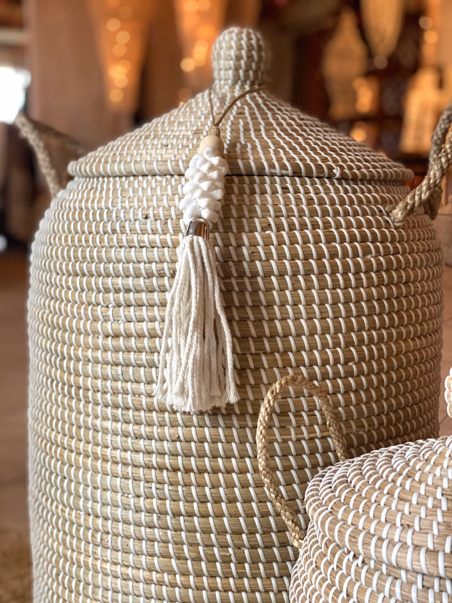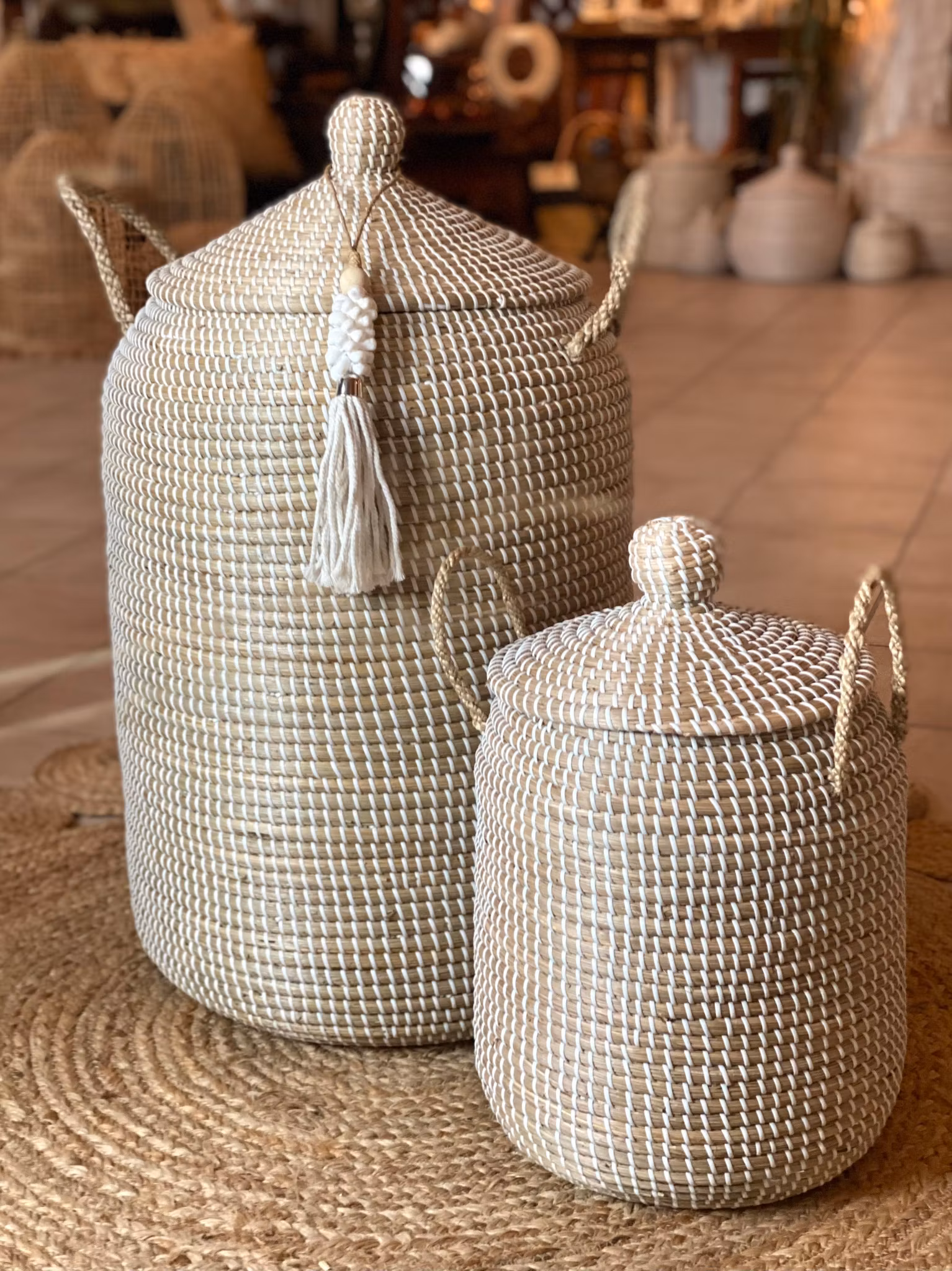 Stabila handtag i tvinnade trådar av naturmaterial.